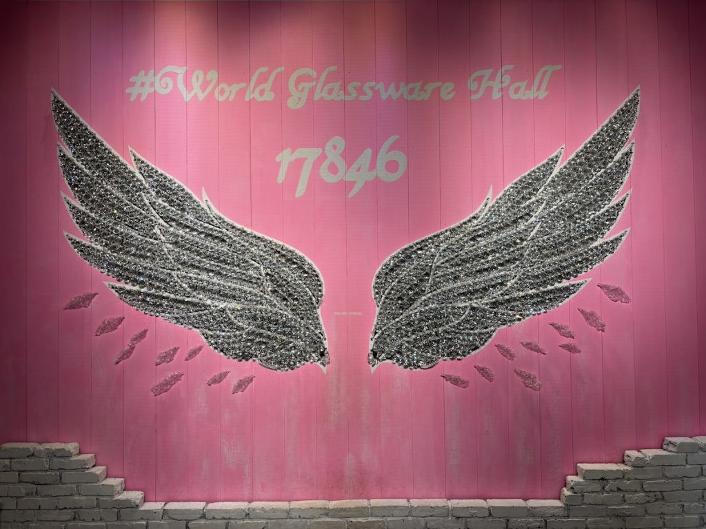 写真映えするガラスの羽のフォトスポット。