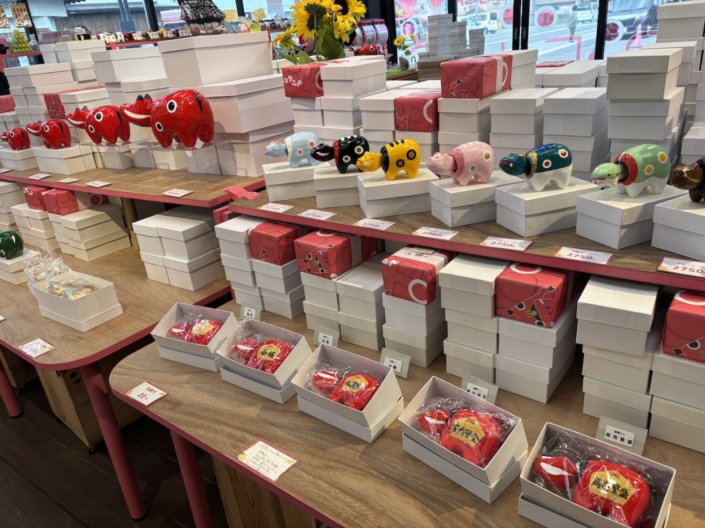 店内には赤べこがずらりと並んでいる。