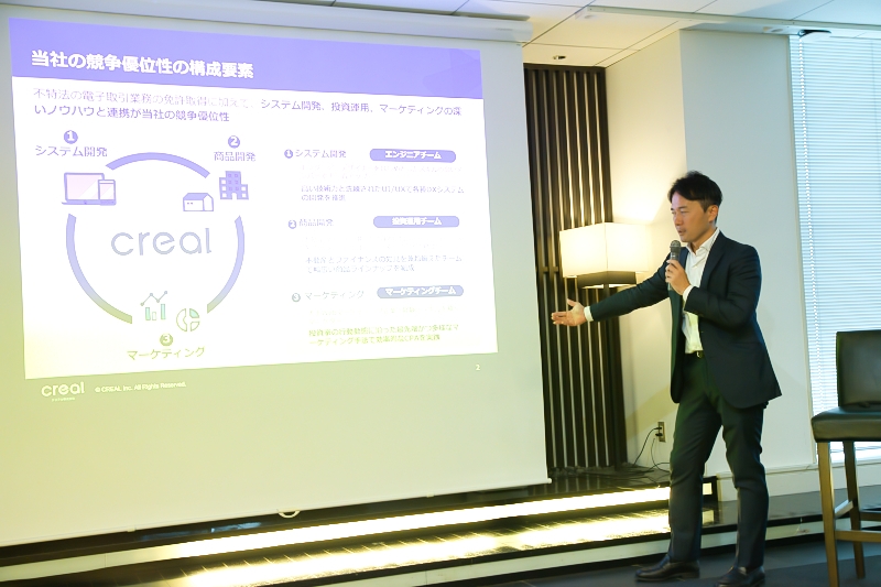 「これまで数千万円単位の資金が必要だった不動産投資を、1万円から始められるようにした。加えて、すべての手続きをスマホで完結できる。まさに“オンライン上で完結する不動産ファンド”です」と横田氏。