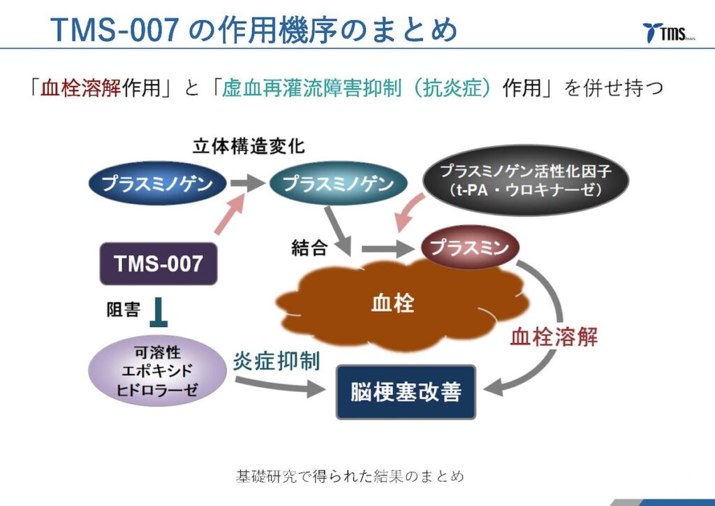 「t-PAは血栓を溶かす作用のみですが、TMS-007はこの2つの作用を併せ持つことで、出血のリスクを抑えながら治療効果を高めることが期待できます。この作用機序こそが、投与可能時間の大幅な延長を可能にする鍵なのです」(蓮見氏)