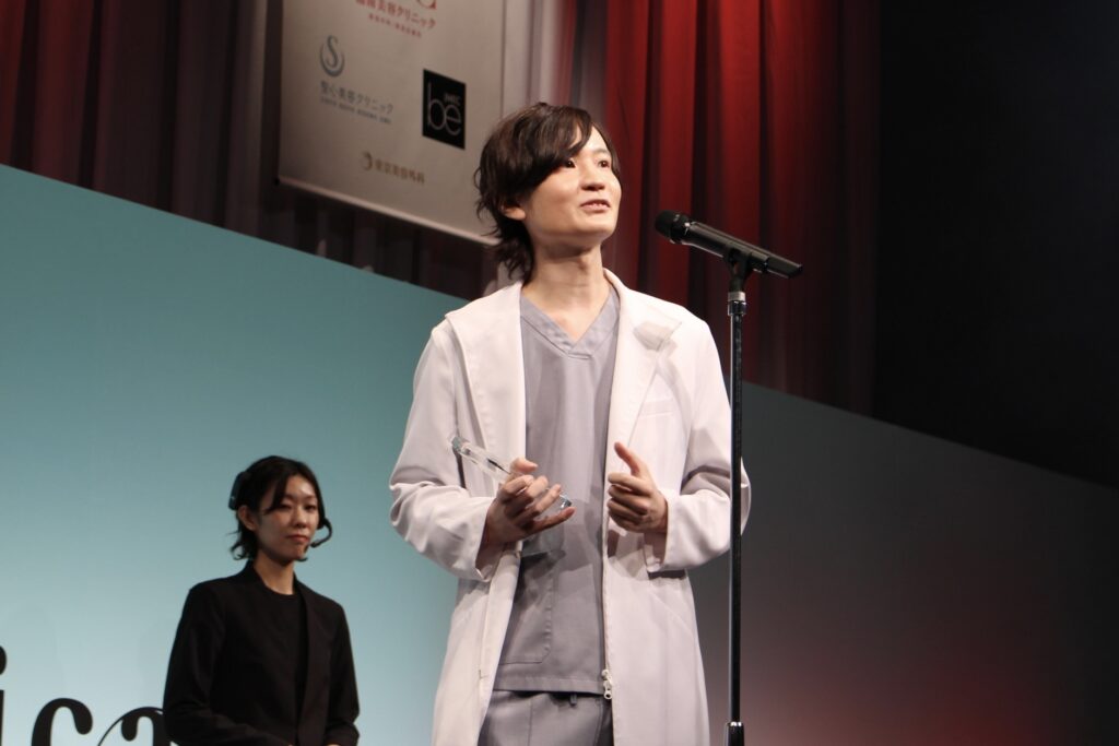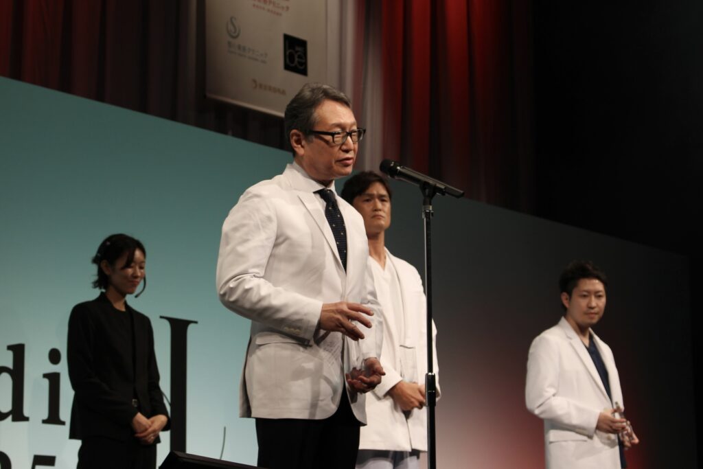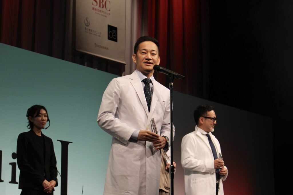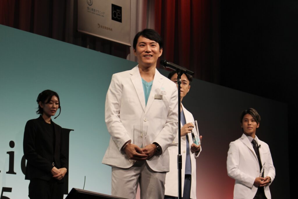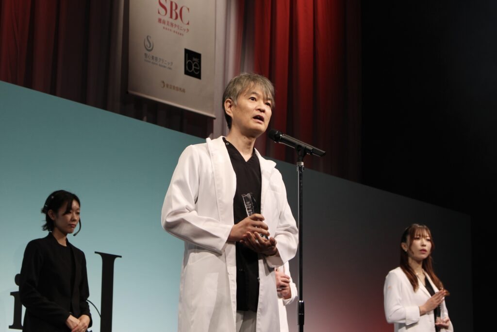 遠藤剛史先生は、「この受賞はスタッフの日々の頑張りの受賞だと思っています。二重整形、脂肪吸引、ヒアルロン酸によるアンチエイジを中心に診療を行っています」と述べました。