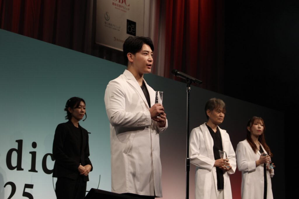 TRIBEAU Doctor & Clinic Awards 2025は、国内最大級の美容医療口コミ・予約アプリであるトリビューに寄せられた過去4年間の本人確認済みの口コミを対象に、信頼と実績を積み重ねてきた医師、クリニックを表彰するもの。それぞれの部門ごとに受賞者にはトロフィーが贈呈され、一言ずつ挨拶しました。