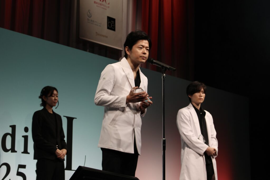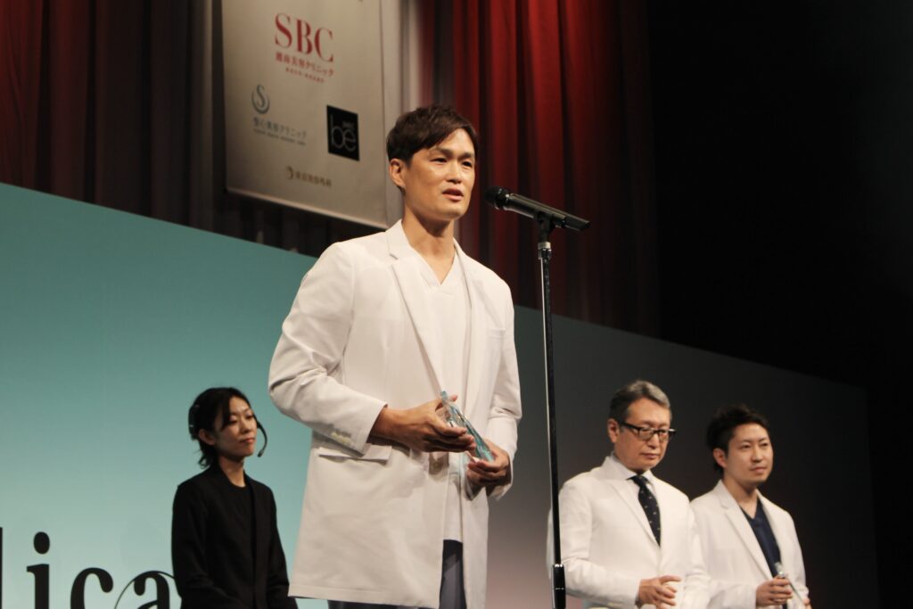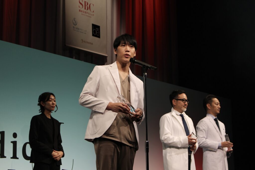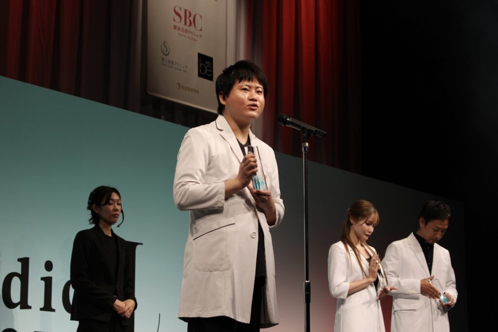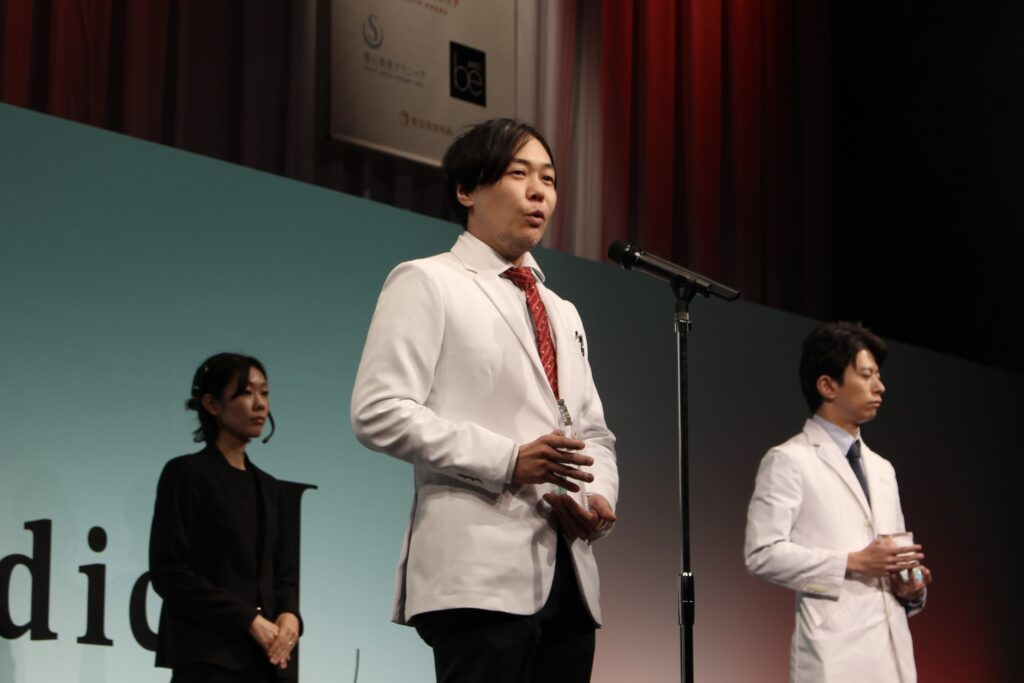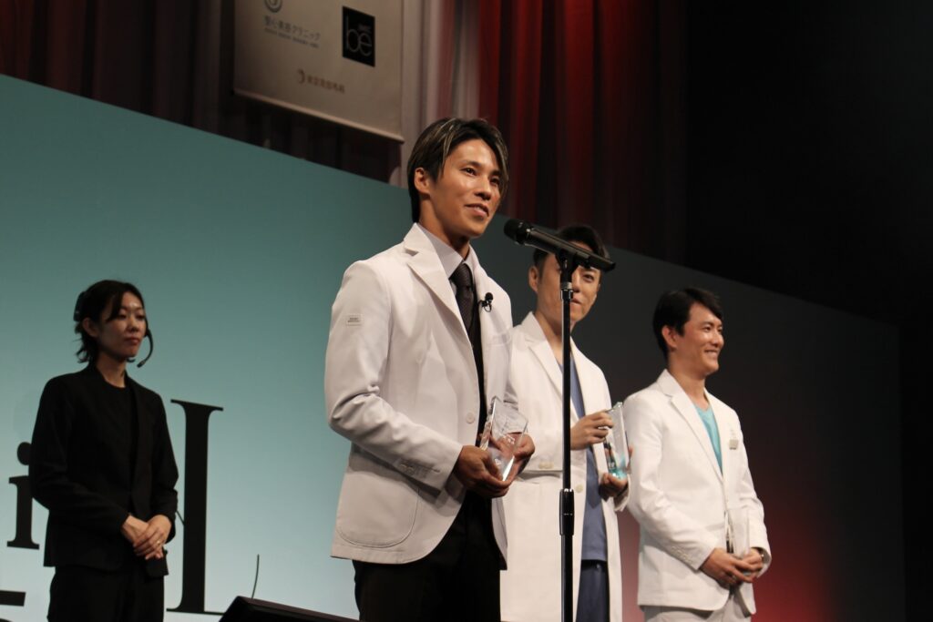 深堀純也先生は、「SNSなどの情報もありますが、口コミが最も信頼性が高いもので、美容外科を口コミで選ぶ時代が来ると思っています。小顔部門でこの3人で受賞できたことが嬉しいです」と語りました。