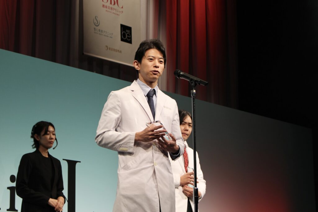 吉井健吾先生は、「クマ治療は自然にアンチエイジができる満足度が高い治療になっています。本日カウンセリングも受け付けていますので、よかったらお越しください」と呼びかけました。同じく、クマ治療部門で受賞したセオリークリニック 筒井裕介先生は欠席でした。