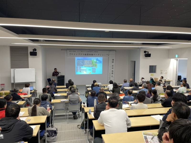 そうした背景のもとで開催される今回のセミナー・ワークショップは、研究者と生産者が知識を共有し合い、最新の科学的知見を現場で活かすことを目的としています。荷田瑞穂准教授による講義では、病気の原因や予防法だけでなく、「なぜその対策が必要なのか」を理論的に理解できる点が大きな特徴です。単なる防除技術の紹介にとどまらず、これからのワイン栽培を持続可能なものにしていくための“学びの場”として期待されています。