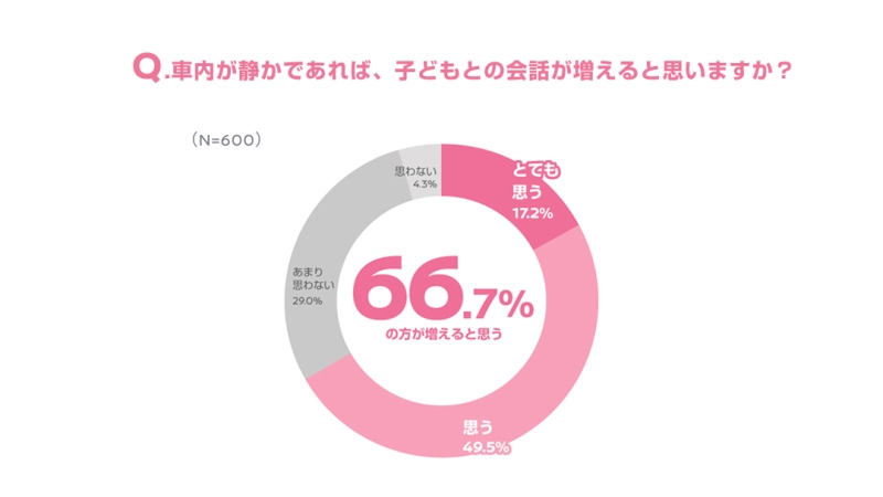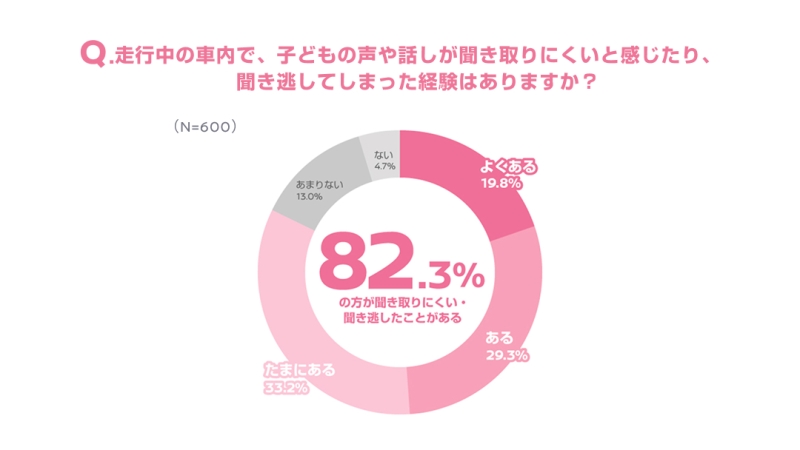 全国の子育て世代600人を対象にした調査では、約8割の親が「子どもとの何気ない会話が思い出に残っている」と回答した一方で、同じく8割以上が「車の走行音で子どもの声を聞き逃したことがある」と感じていることが明らかに。