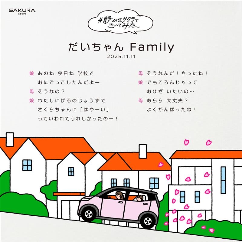 日産自動車は、軽EV(電気自動車)「サクラ」の静かな車内に着目し、家族の“声”をテーマにした企画「#静かなサクラできいてみた」をスタートしました。
