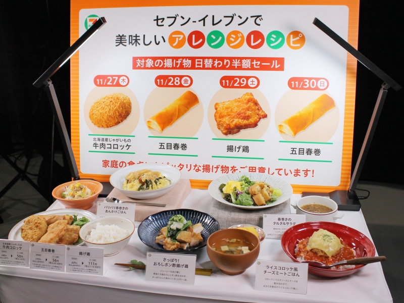 先日都内で発表会が行われ、ブラックフライデー商戦にかけるセブンの思いが語られました。また、料理研究家のもあいかすみさんによるセブンの揚げ物を使ったアレンジレシピの紹介も行われ、記者陣に試食をふるまう場面も。