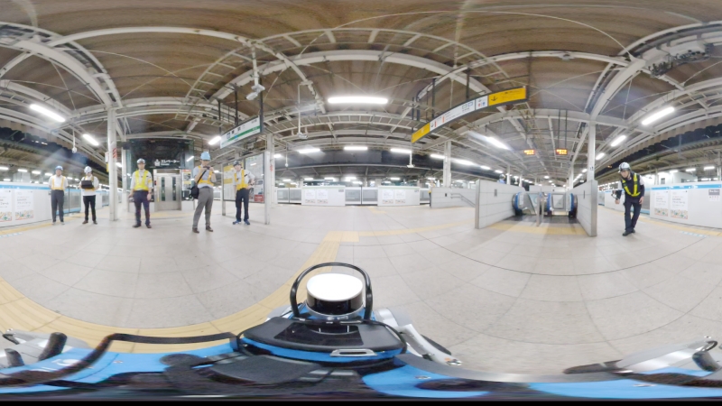 さらに、ロボットには360°カメラが搭載されており、周囲を一度に見渡せる映像を取得できます。人がその場に立ったときの視界を再現するような感覚で状況を確認できるため、後から見返した際にも細かなチェックがしやすくなります。広い駅構内では、全方向を同じ精度で記録し続けることは難しいため、こうした機能の存在は大きな意味を持つと考えられます。