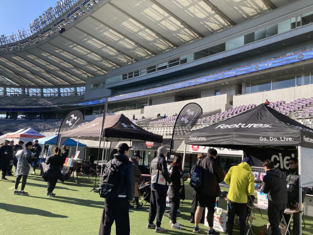 筆者はDAY2の一番最初の回であるWave1(10時開始)に参加しましたが、既にスタジアム内には多くの方が訪れており、着替えを済ませた方は会場内でストレッチを行ったり、スタジアム内に設置されたブースを回っていました。