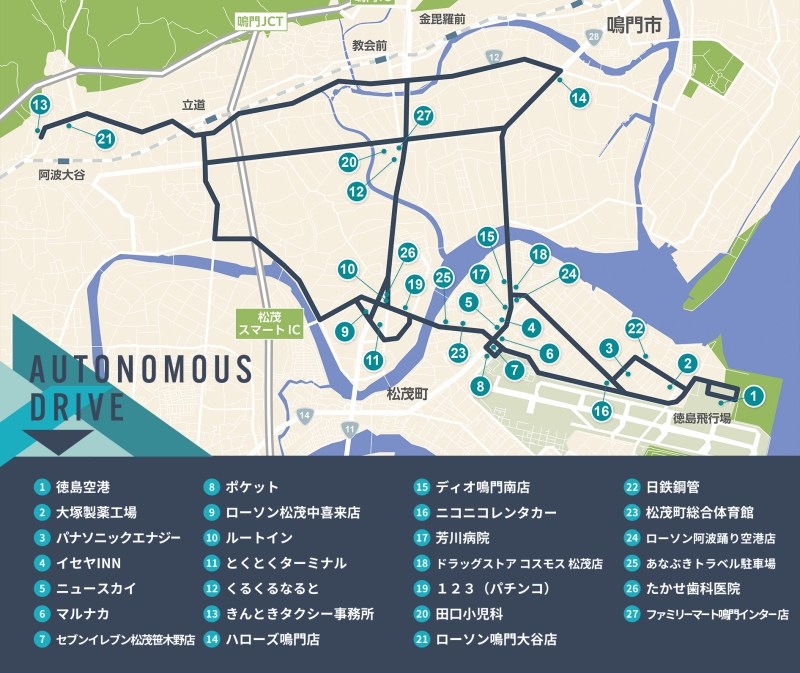 自動運転というと、最先端の都市や実験専用のコースで行われるもの、という印象を持つ人も多いかもしれません。今回の取り組みが注目される理由は、そうしたイメージとは少し違う場所で行われている点にあります。舞台となっているのは、徳島県鳴門市の西部エリアから空港へと続く、日常的に人の移動が発生する地域です。