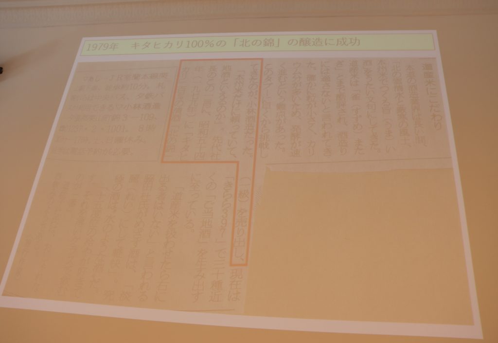 また、お酒造りに向かず「すずめまたぎ(すずめも食べない)」と言われていた道産米を使った日本酒造りの発展にも尽力し、1979年に道産米を100%使用した同酒造の代表銘柄「北の錦」が完成したのだと語りました。