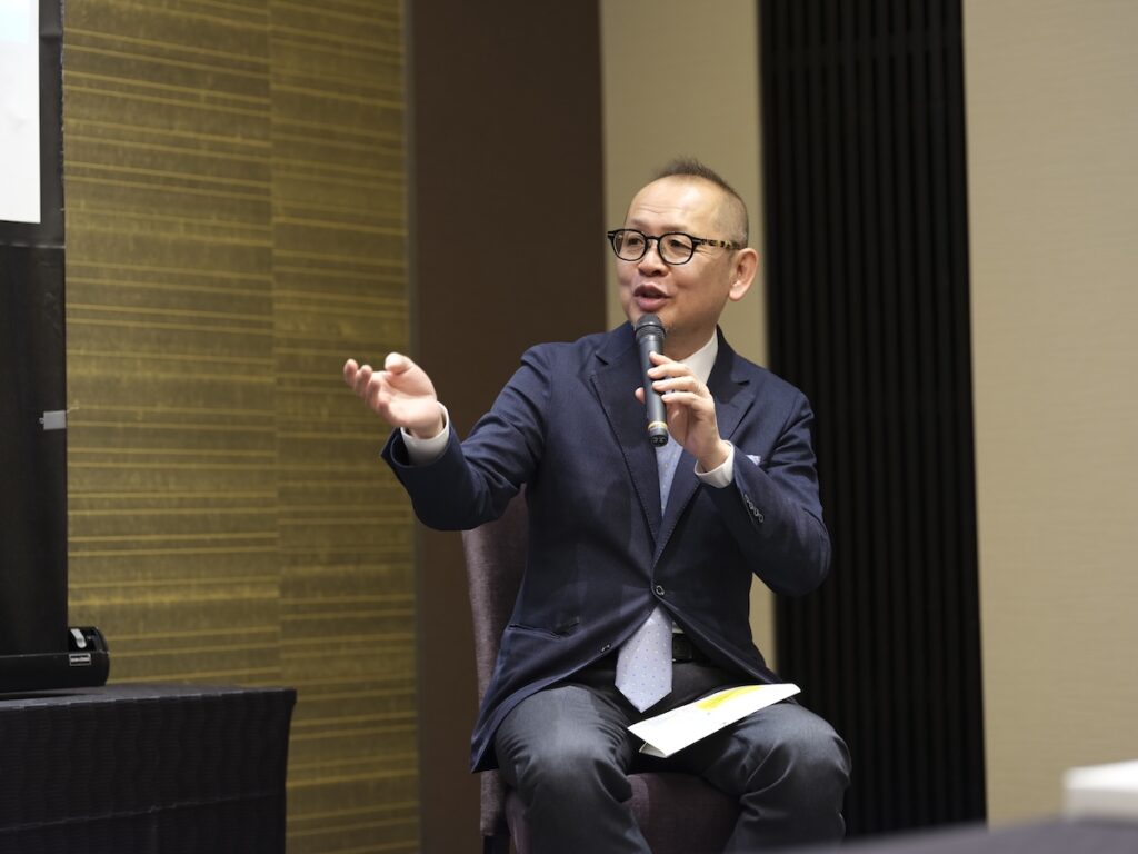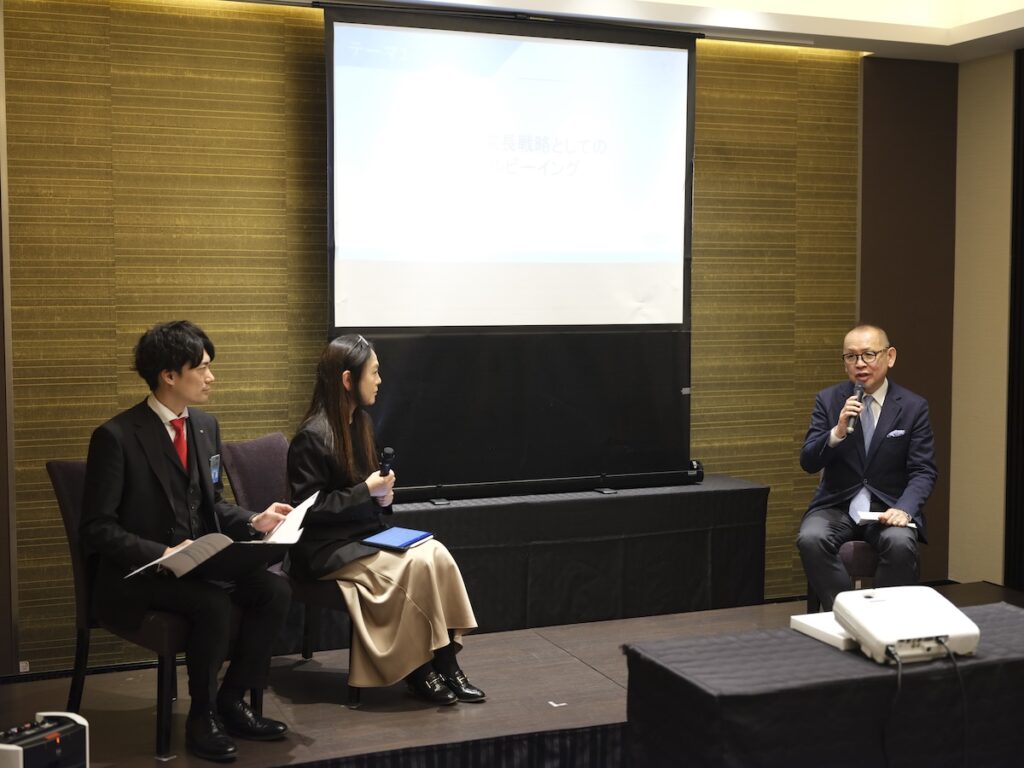 下坂さんによると、この日のゲスト前野隆教授が提唱する“幸せの4つの因子”を、青年会所版として“幸せの種”に置き換え、日常の行動を少し意識して変えることで幸せの実感が高まるという気づきを全国に広げ、実際の行動へとつなげていく“幸せの種まき”を行っているのだとか。また下坂さんは、日本JCの最大の特徴は、全国各地で多様なステークホルダーと連携しながら社会課題の解決に取り組んできた点だと話し、それによって、今回の研究が理論だけでなく、社会と接続されたネットワークの上で推進される実践型の取り組みとなると語りました。