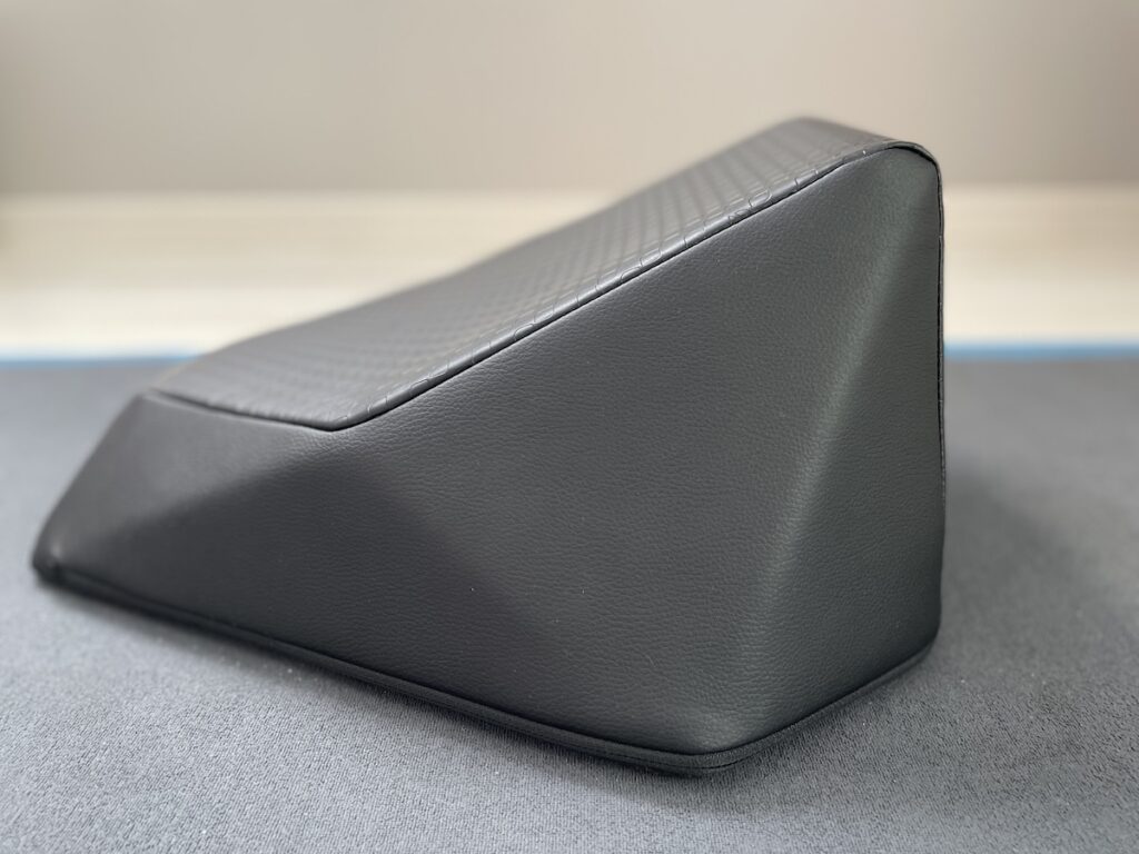 まず「エクストラクッション」に座って感じたのは、骨盤が自然と立ちやすいこと。意識して姿勢を整えなくても背筋がすっと伸び、普段よりもストレッチしやすい姿勢を保てました。