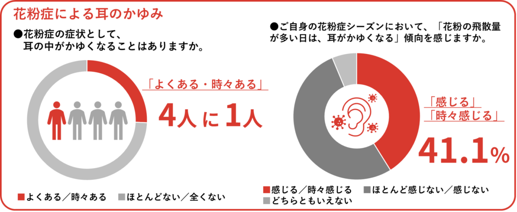 花粉症の症状といえば、目のかゆみや鼻水、くしゃみを思い浮かべる人が多いですが、実は「耳のかゆみ」も見逃せない症状のひとつです。今回は花粉による耳のかゆみを“花粉耳”と表現。株式会社池田模範堂が花粉症の自覚症状を持つ全国20歳~69歳の男女1000名を対象に実施した調査結果を元に、“花粉耳”の実態と、ついやりがちな間違った対処法、そして正しいケア方法を紹介していきます。