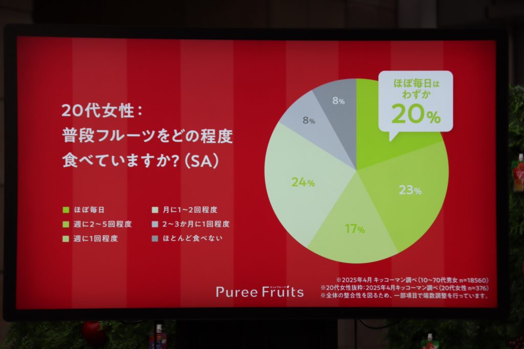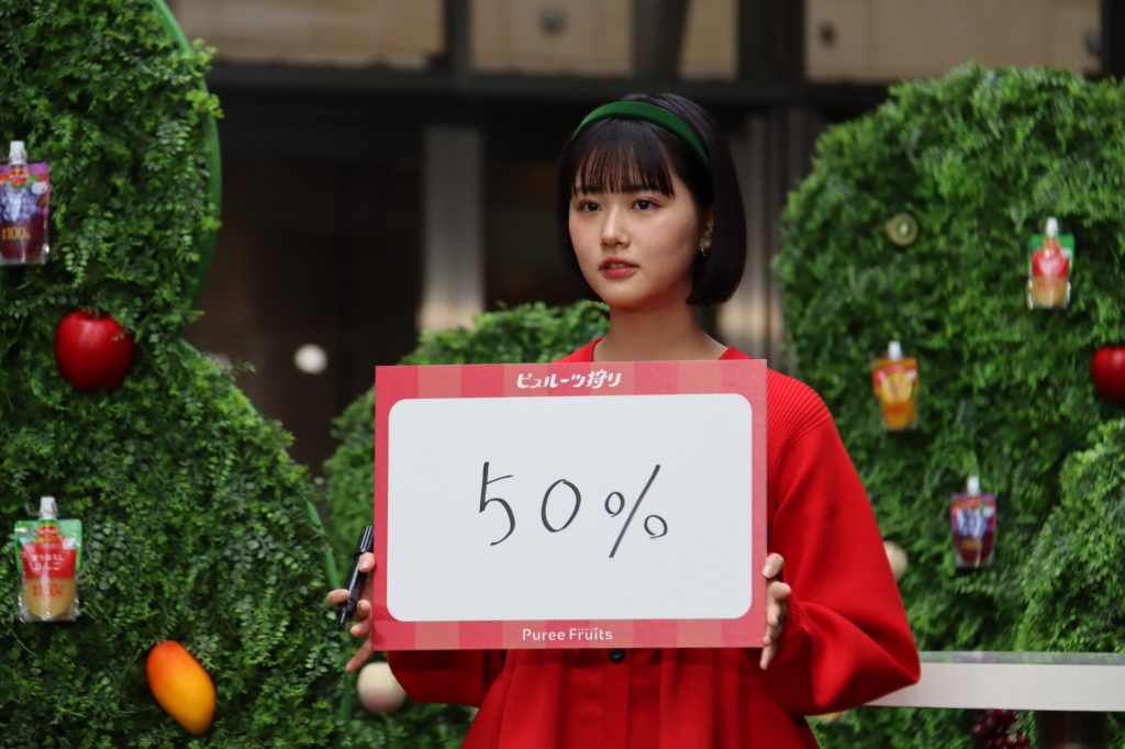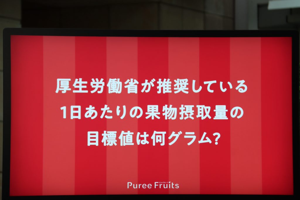 「さきほど(司会の方が)、ピュレフルーツは1日の摂取量の半分を摂れるって言ってたので、これくらいかなと予想しました。」