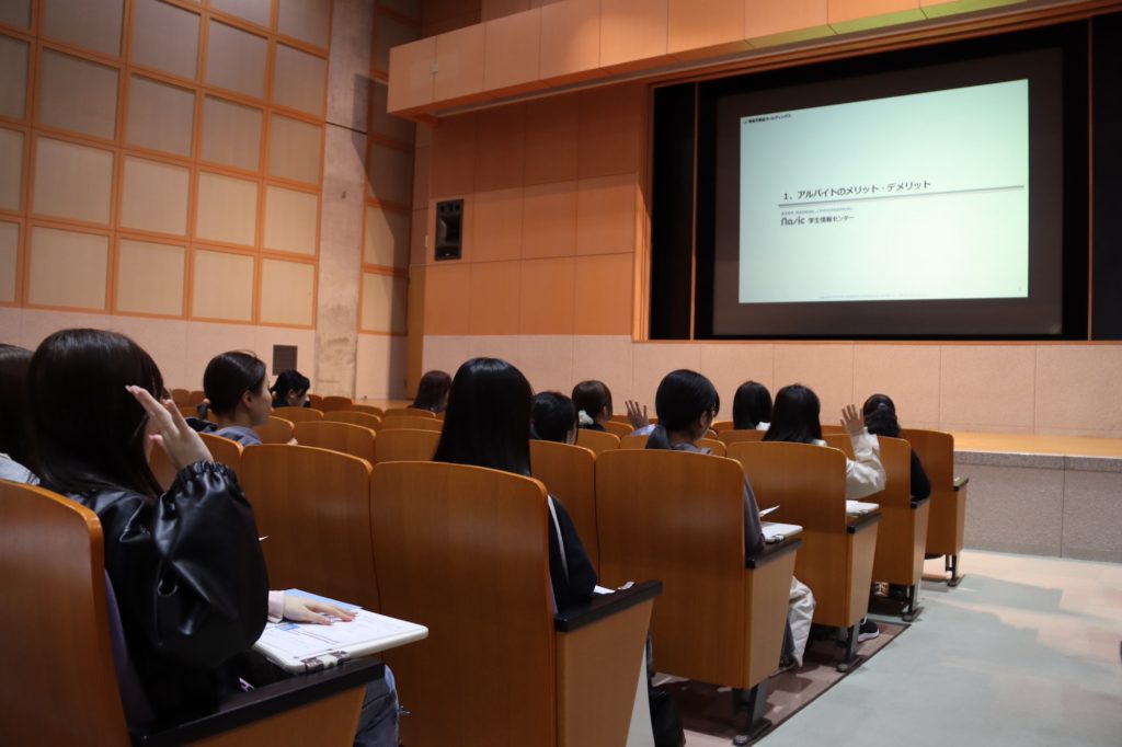 学校公認アルバイト紹介システム「バイトネット」を運営する株式会社学生情報センターと共同実施し、イベントの前半にミニセミナーを実施。