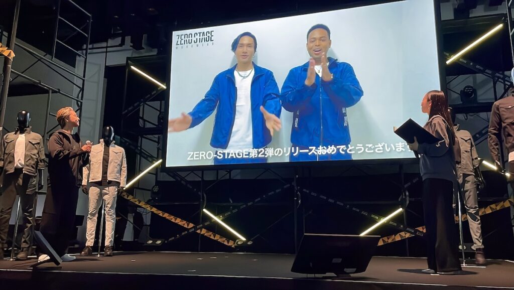 ここで、EXILEメンバーからのサプライズVTRが投影。VTRに登場したのはEXILEのNESMITHさんと橘ケンチさん。お二人はVTRの中で『ZERO-STAGE』のワークウェアを着用し、その着心地やかっこよさを絶賛。橘ケンチさんは朝のウォーキングで着用したいと話しました。