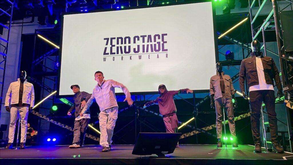 発表会のオープニングには、世界で活躍するブレイキンチーム「FOUND NATION(ファウンドネーション)」が登場し、圧巻のパフォーマンスを披露しました。新作の『ZERO-STAGE』を着用しており、その動きやすさやスタイリッシュさを印象付けました。