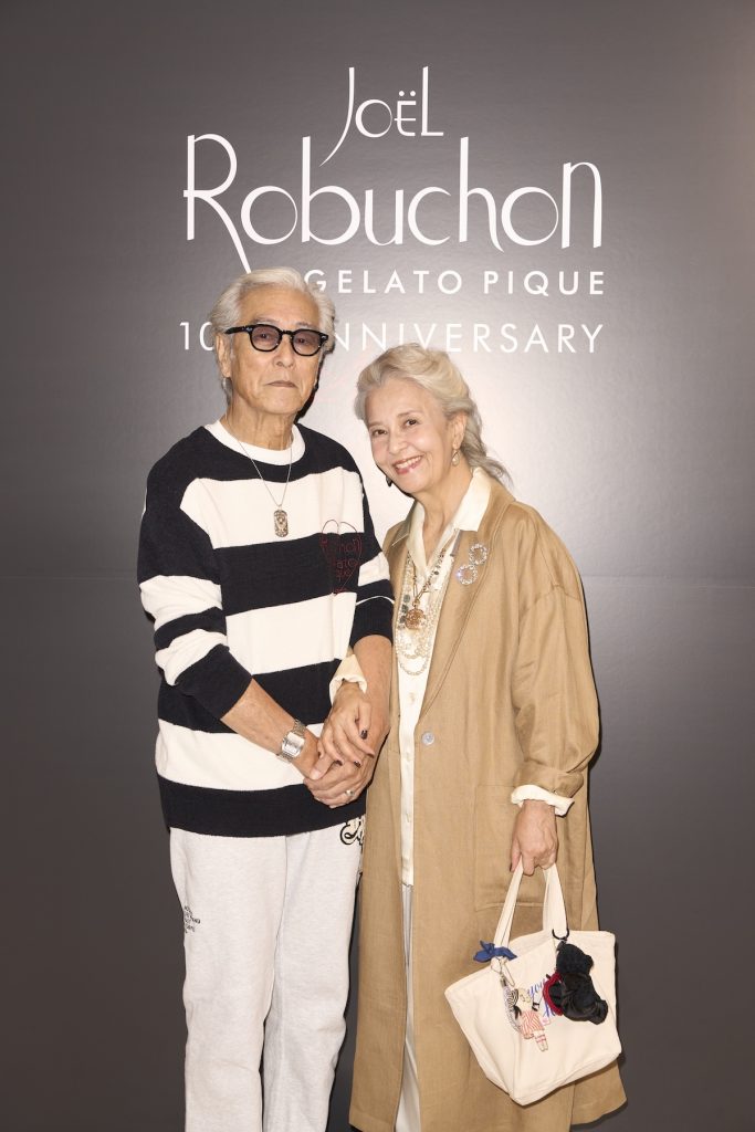 イベントはgelato piqueとJOËL ROBUCHONのコラボレーション10周年を記念し、お世話になっている方々への“感謝”と、今後のさらなる発展を願って“交流”を深める食事会として開催。ドレスコードは、なんとルームウェア。ゲストたちは、『JOËL ROBUCHON & GELATO PIQUE』2025年秋コレクションを身に纏い、三つ星フレンチとともに優雅な時間を楽しんだ。