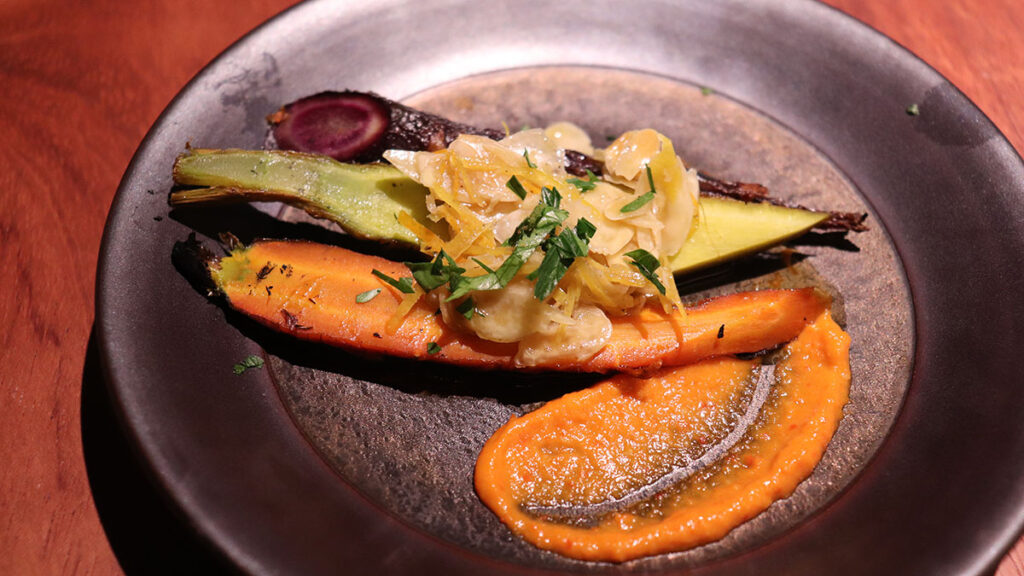 400℃の石窯でグリルすることで、人参が持つポテンシャルを最高潮まで引き出したメニュー。人参が苦手な記者も美味しくいただきました。
