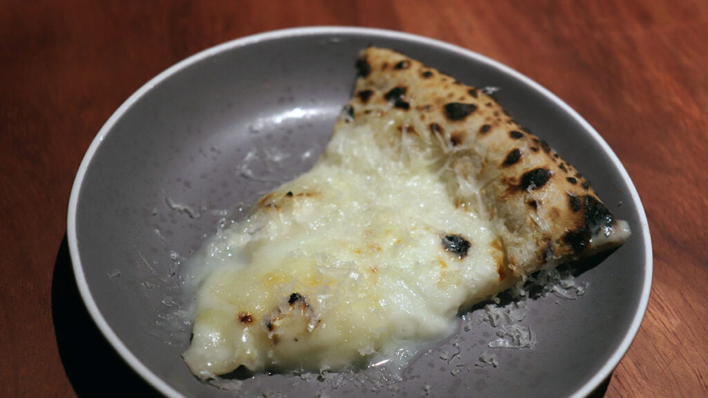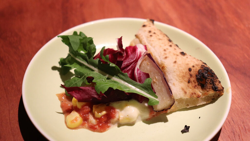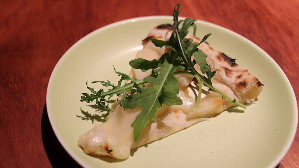 自慢の石窯で焼き上げたピザが3種類登場。信州産の新鮮な夏野菜がたっぷり乗ったマルゲリータ、連携する那須塩原市のチーズ工房の濃厚なチーズがたまらないクアトロフォルマッジ、そしてデザート感覚で楽しめる山形県産洋梨のピッツァと、それぞれに異なる魅力が光ります。