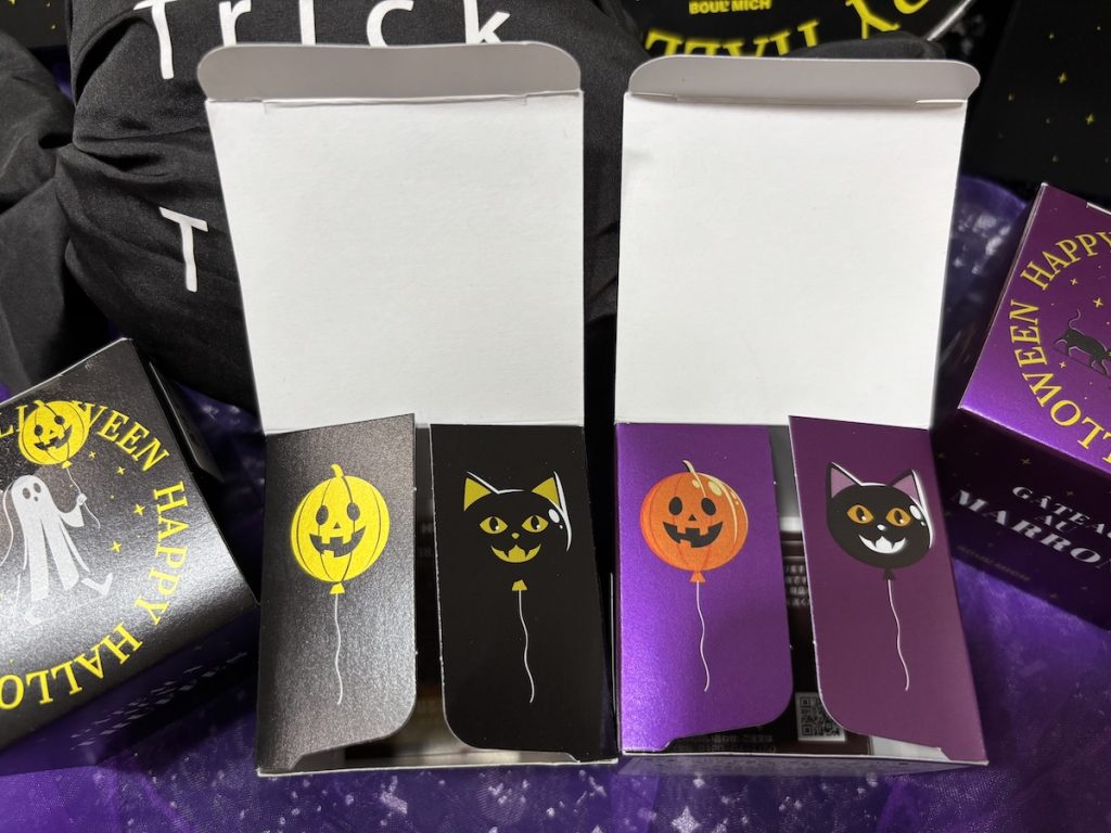 ハロウィン トリュフケーキとハロウィン ガトー・オ・マロンのパッケージを開けてみると、ジャック・オー・ランタンと黒猫を発見。遊び心溢れる“大人可愛い”パッケージに、なんだかつい嬉しくなってしまう。