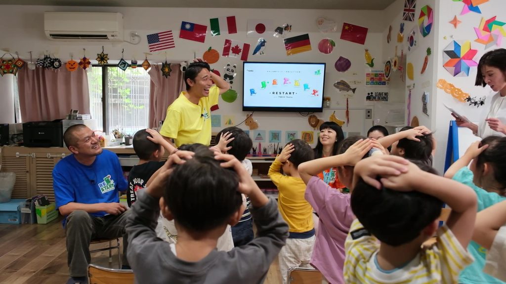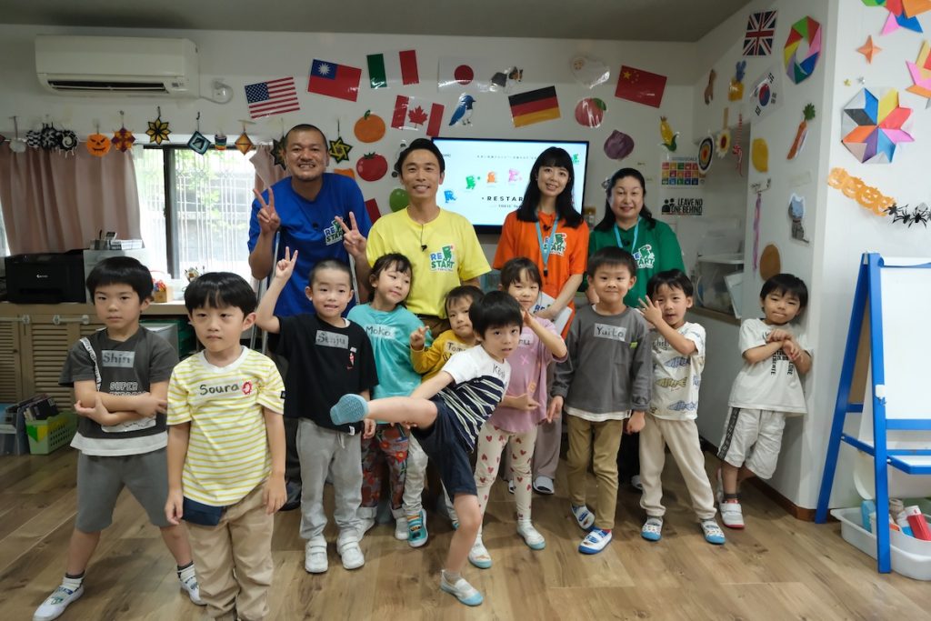 モンテッソーリ教育を実践する東京・新宿区の保育園「Frontierkids Global School」を会場に行われた体験では、カミナリの竹内まなぶと石田たくみが一般応募者から選ばれた2名の体験者とともに英語の先生に挑戦。英語を使ったゲームを通じて4歳から5歳の園児と交流した。