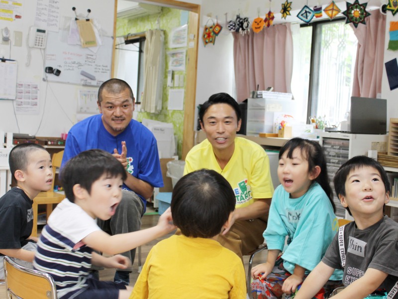 左から:カミナリ(まなぶ先生 たくみ先生) はなえ先生 あき先生